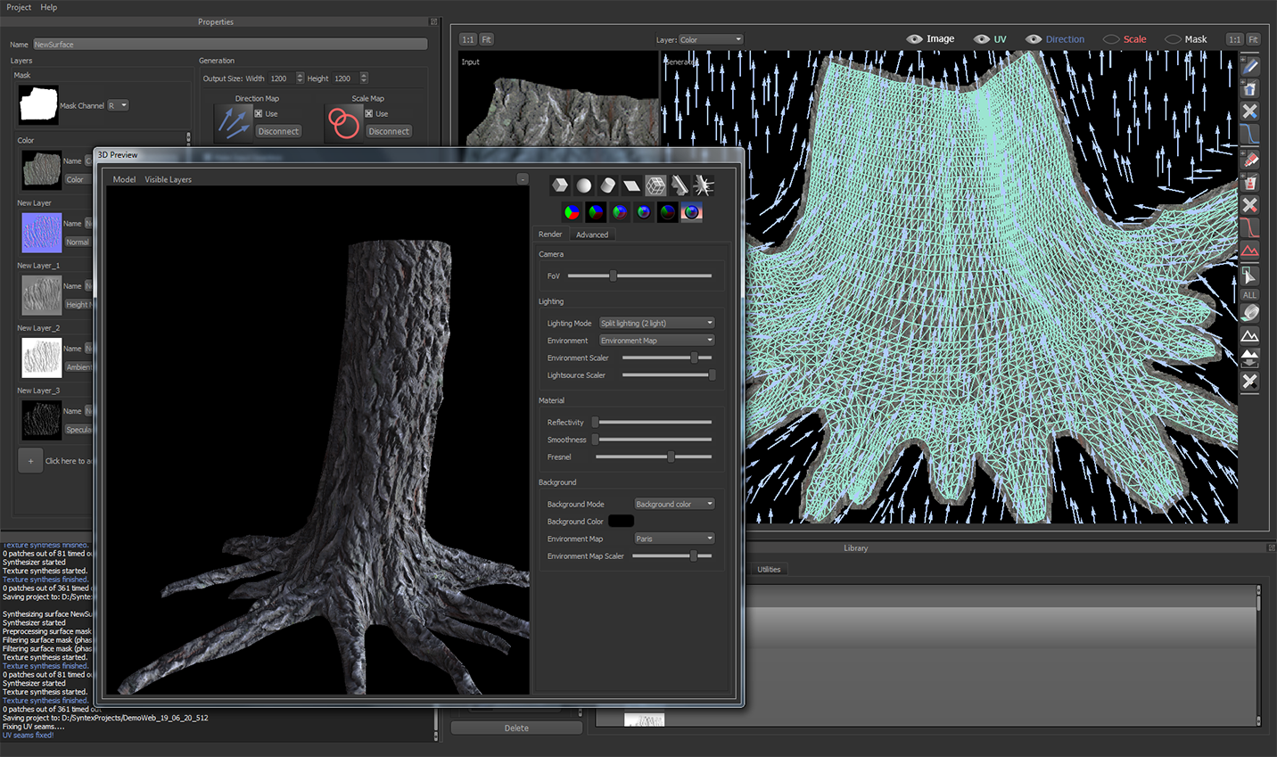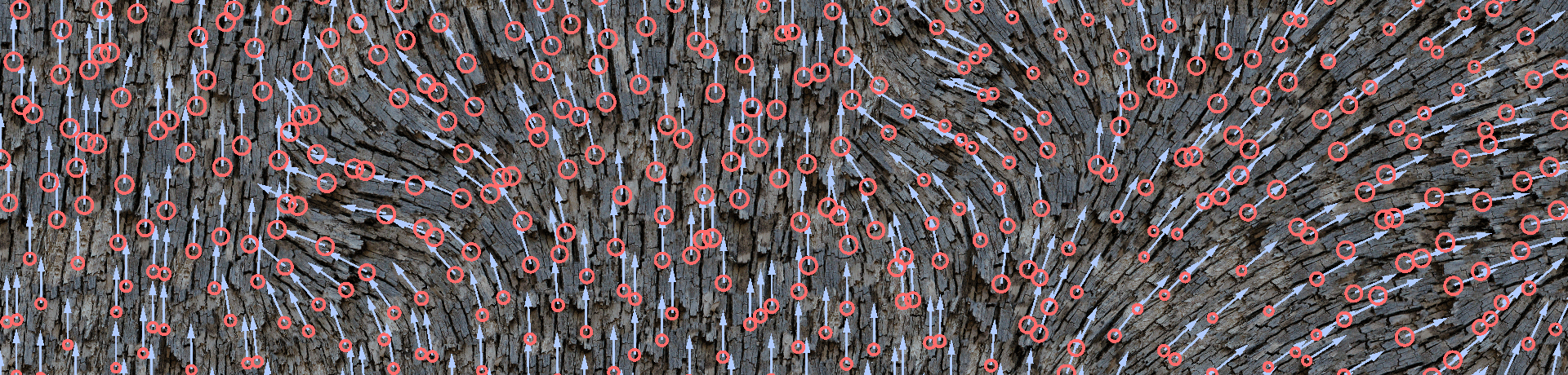 You can extend your input texture size to larger, similarly structured images. Before the synthesis process you can paint direction and scale to attain the desired texture design. Litexs handles multilayer inputs, and the direction and scale strikes will be followed in a similar manner in every layer.